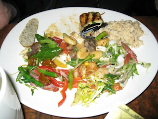 These were our cold plates with different kinds of salads. On the second plate, that is grilled sea bass (the one with the grill marks).